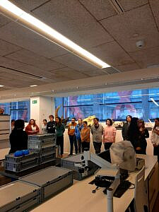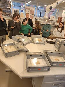 La jornada fue extraordinariamente interesante, pues pudimos contemplar las excelentes instalaciones de los laboratorios de conservación y restauración con la atención y explicaciones detalladas de las conservadoras y demás trabajadores del centro, que nos guiaron una visita con amplias explicaciones sobre el material paleontológico del que se ocupan, desde la fase inicial, en el mismo yacimiento de Atapuerca (técnicas iniciales de consolidación, dotación de carcasas para el traslado de los restos al laboratorio…) hasta los distintos procesos a los que someten las piezas en el CENIEH.