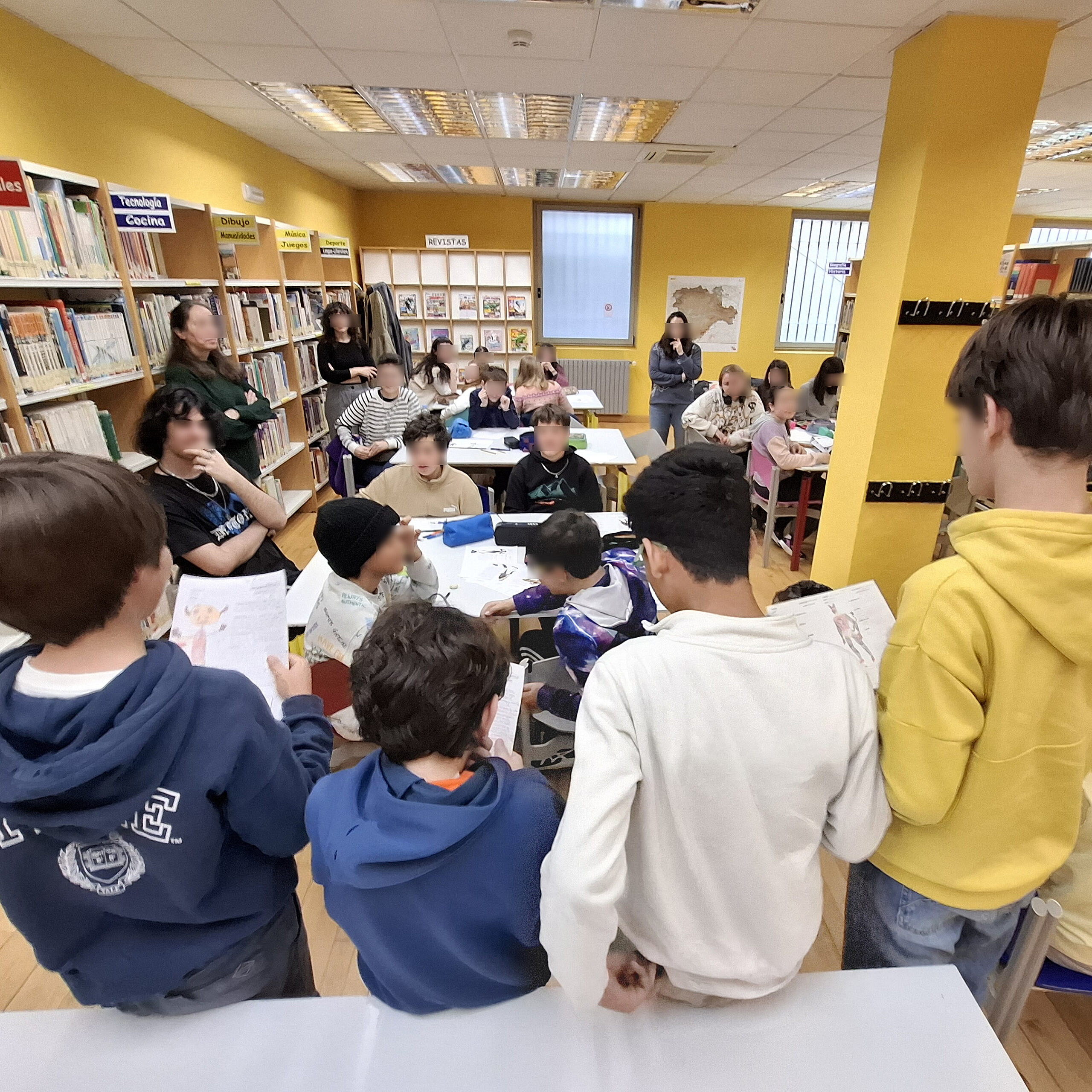 En un contexto propiciado por la colaboración entre la Escuela de Arte de Ávila y la Biblioteca Pública, alumnos de 1.º del CFGS en Cómic de la Escuela han acudido a la Biblioteca para impartir una charla seguida de un taller para alumnos de 6.º de Educación Primaria del CEIP Santa Teresa.