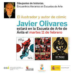 Este programa pone a la comunidad educativa de las Escuelas de Arte en contacto directo con profesionales relevantes de la ilustración y el cómic. En esta ocasión hemos tenido la suerte de disfrutar, en la Escuela de Arte de Ávila, de la inestimable experiencia de Javier Olivares, cuya trayectoria profesional le ha llevado a ser Premio Nacional de Cómic 2015 por su obra «Las Meninas«. Entre sus trabajos cabe destacar también «La cólera«, en la que ha trabajado junto al guionista Santiago García, «El extraño caso del Doctor Jekyll y Mister Hyde«, «El perro de los Baskerville» (Arthur Conan Doyle), » Cuentos de Navidad» (Charles Dickens) o «Luces de Bohemia» (Valle Inclán).