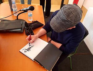 Esta mañana, en el marco  de una nueva edición del programa «Dibujantes de Historias. Encuentros literarios en Escuelas de Arte«, promovido por el Ministerio de Cultura a través de la Dirección General del Libro, del Cómic y de la Lectura, alumnos y profesores de la Escuela de Arte de Ávila hemos podido asistir a una interesante ponencia a cargo del ilustrador e historietista Javier Olivares, que nos ha acercado de forma directa a su manera de trabajar mostrándonos las diferentes fases por las que pasa cuando afronta sus encargos.