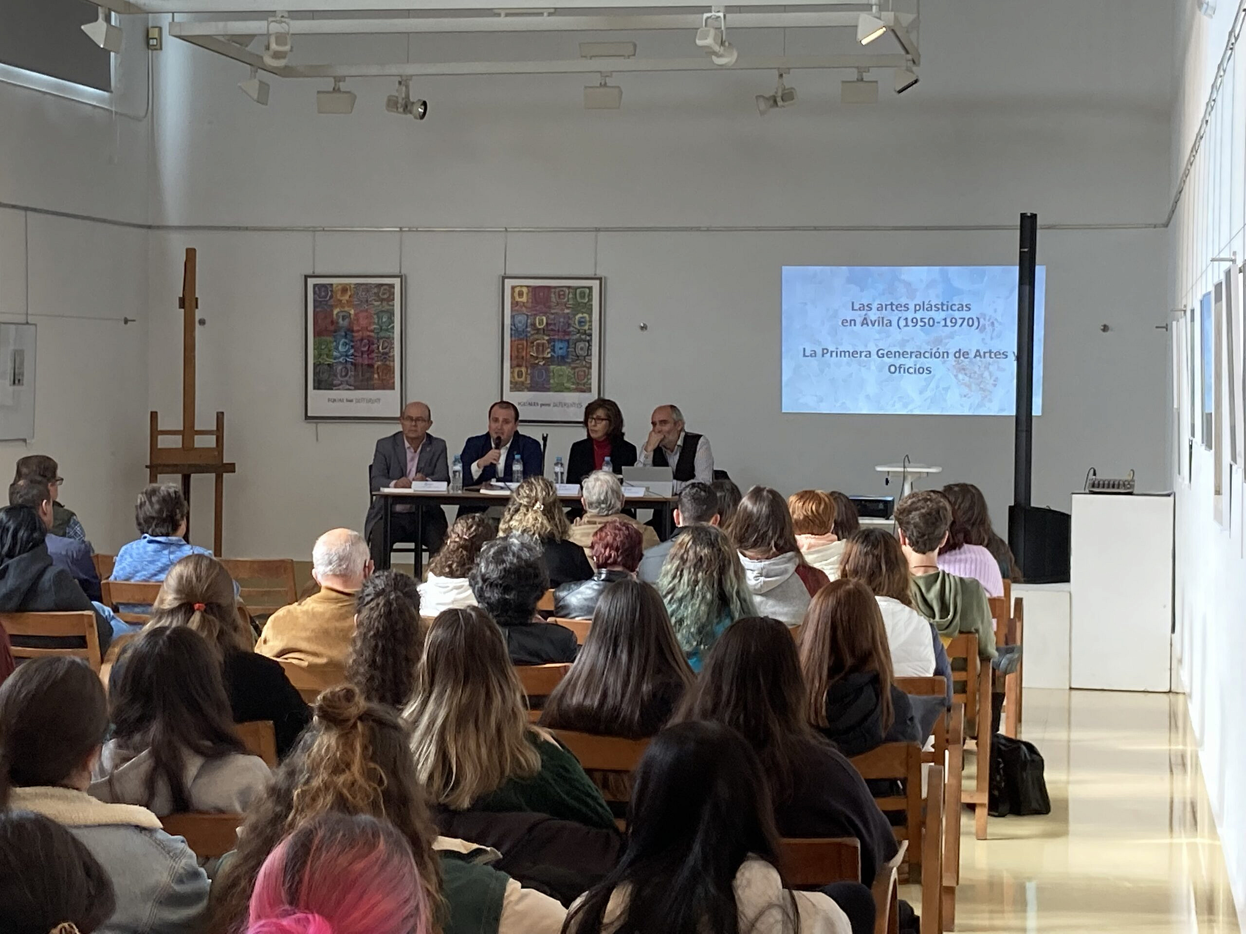 El lunes, 7 de noviembre, en la Sala de Exposiciones de la Escuela de Arte, alumnos y profesores del centro pudimos asistir a la presentación del libro “Las Artes Plásticas en Ávila (1950-1970). La primera generación de Artes y Oficios”, de Juan Antonio Sánchez Hernández. El libro, editado por la Institución Gran Duque de Alba, se apoya en la tesis doctoral elaborada por este profesor de la UCAV que ha indagado sobre la aportación creativa de la Escuela de Artes y Oficios de Ávila entre 1950 y 1970. La presentación del libro nos ha dado la oportunidad de conocer un poco más a aquellos profesores y alumnos que, en esos años, “iluminaron” el panorama artístico y cultural abulense.