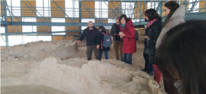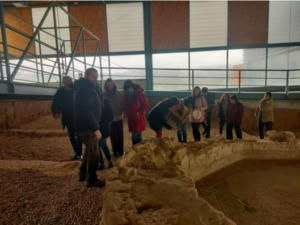 El pasado 14 de diciembre, los alumnos de todos los cursos de Conservación y Restauración de Bienes Culturales viajaron, junto a cuatro profesores, a la Villa Romana de Noheda, (Cuenca) como actividad extraescolar. Tras una parada en los talleres y almacenes, donde asistieron a una charla impartida por las arqueólogas sobre el yacimiento y los materiales aparecidos, visitaron el triclinium del palacio y sus espectaculares mosaicos, los más extensos y lujosos de la península. La explicación in situ de la inmensa sala y su pavimento musivario corrió a cargo de Xoán Moreno, asesor técnico de las obras de restauración de estos mosaicos y pinturas murales. Entre otros temas, habló de la historia del yacimiento, de las excavaciones llevadas a cabo, de las intervenciones de conservación y restauración acometidas y del inmenso potencial que tiene el yacimiento dado lo mucho que queda por excavar. También asistió el alcalde, don Javier Parrilla, quien expuso a los alumnos aspectos sobre la financiación de las obras realizadas y proyectadas. La visita fue considerada por alumnos y docentes como extraordinaria.