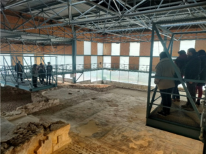 El pasado 14 de diciembre, los alumnos de todos los cursos de Conservación y Restauración de Bienes Culturales viajaron, junto a cuatro profesores, a la Villa Romana de Noheda, (Cuenca) como actividad extraescolar. Tras una parada en los talleres y almacenes, donde asistieron a una charla impartida por las arqueólogas sobre el yacimiento y los materiales aparecidos, visitaron el triclinium del palacio y sus espectaculares mosaicos, los más extensos y lujosos de la península. La explicación in situ de la inmensa sala y su pavimento musivario corrió a cargo de Xoán Moreno, asesor técnico de las obras de restauración de estos mosaicos y pinturas murales. Entre otros temas, habló de la historia del yacimiento, de las excavaciones llevadas a cabo, de las intervenciones de conservación y restauración acometidas y del inmenso potencial que tiene el yacimiento dado lo mucho que queda por excavar. También asistió el alcalde, don Javier Parrilla, quien expuso a los alumnos aspectos sobre la financiación de las obras realizadas y proyectadas. La visita fue considerada por alumnos y docentes como extraordinaria.